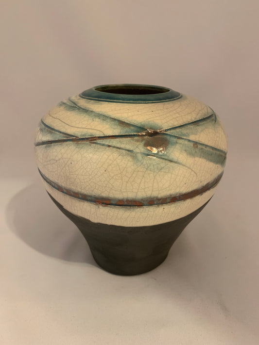 Raku fired Curvaceous Crackle Pear (6 1/2")