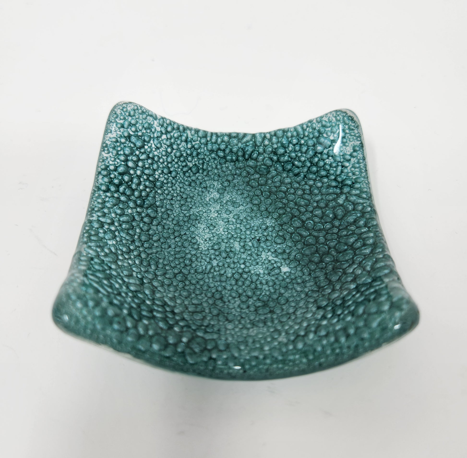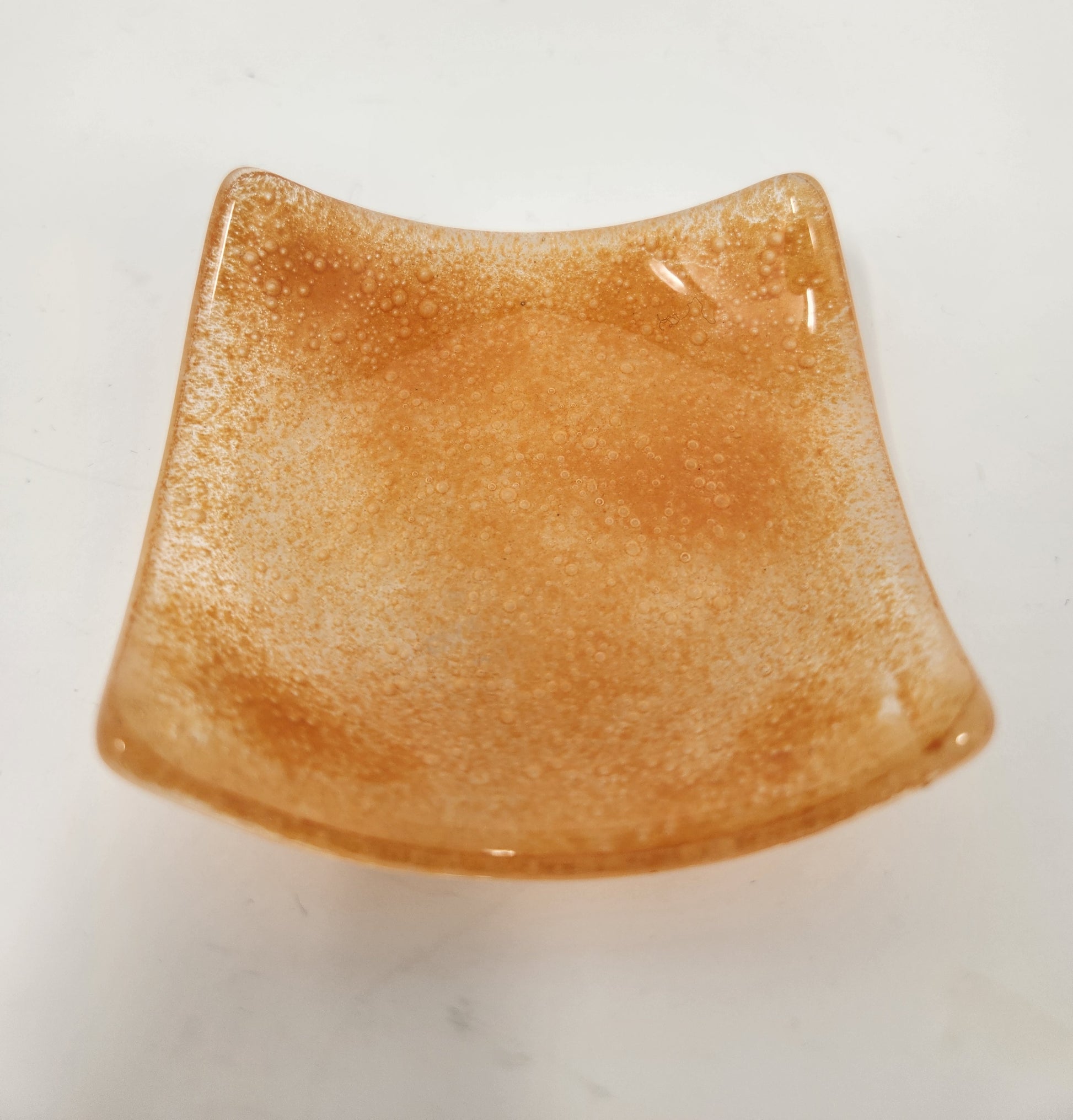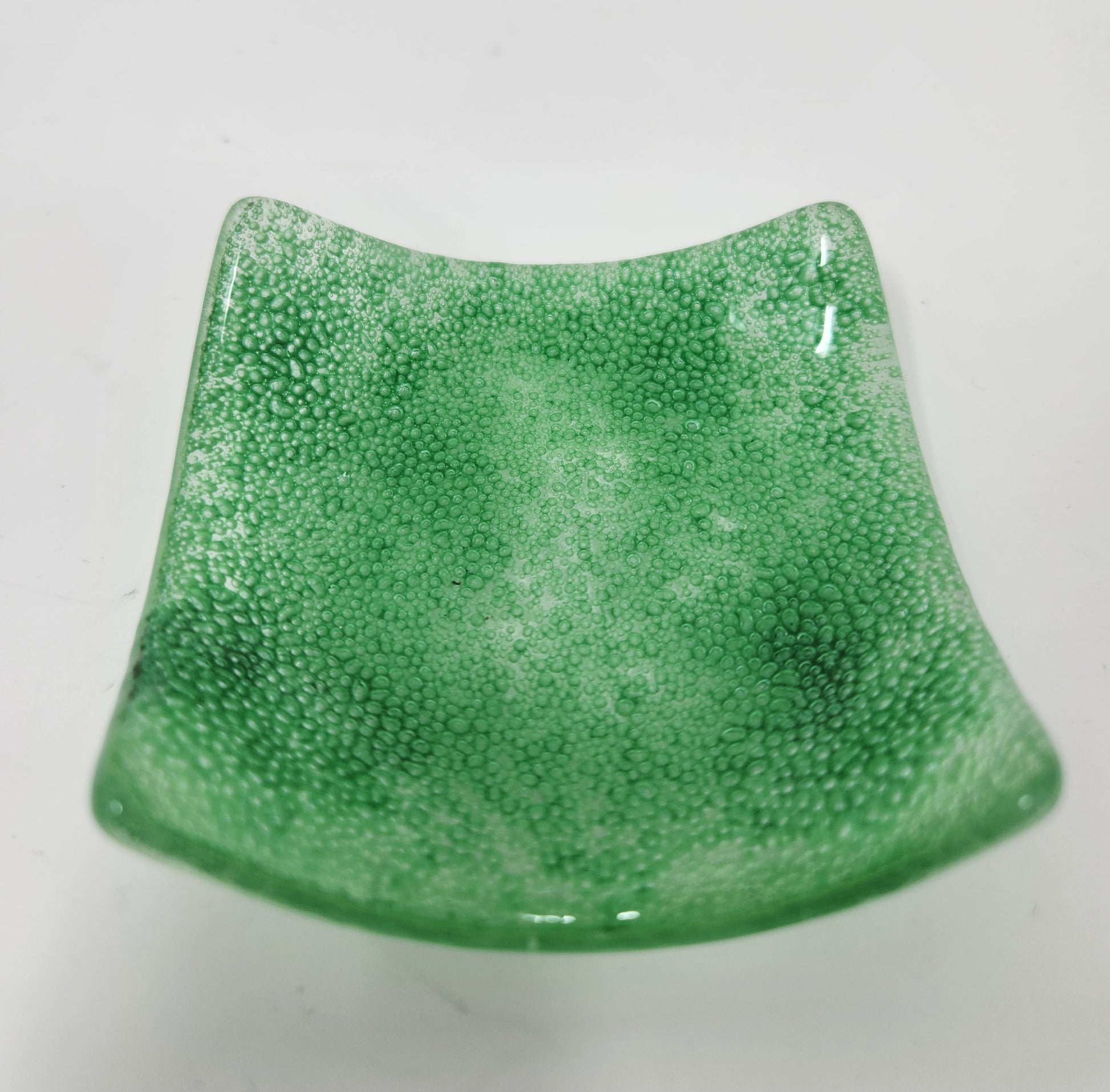 Fused glass with bubble textures in pretty colours. Approximately 3" square. Nice flat bottom so they don't wobble!