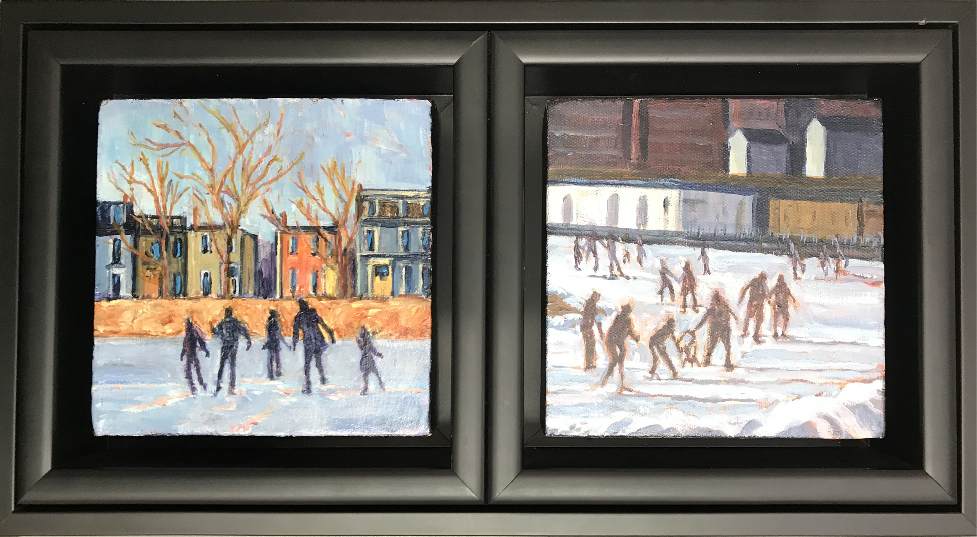 Skaters on the Oval with houses on North Park Street.